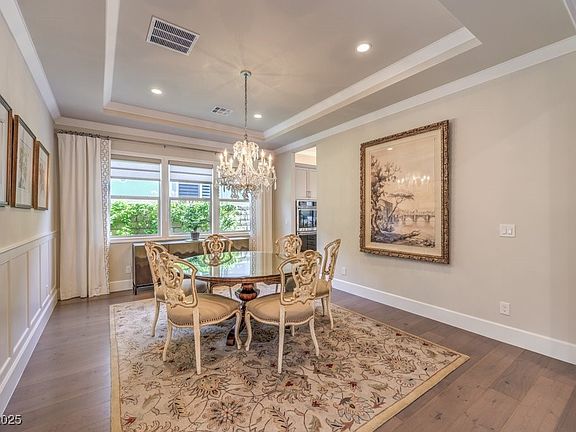 Exquisite single-story Toll Brothers home in the gated Los Altos community of Summerlin. Built in 2018, this residence offers an open layout with soaring ceilings, abundant natural light, and extensive custom upgrades. The gourmet kitchen features granite counters, premium stainless appliances, and a large island ideal for entertaining. The primary suite includes walk-in closets and a spa-like bath, while a converted room serves as a private gym or office, tucked away from the main living areas for added privacy. Elegant finishes such as tile flooring, designer details, and a cozy fireplace add warmth and sophistication. Outdoors, enjoy a covered patio, beautifully landscaped yard, and the peace of a gated setting. A spacious three-car garage and proximity to Summerlin’s best parks, trails, dining, and shopping make this home a perfect blend of comfort, style, and convenience.