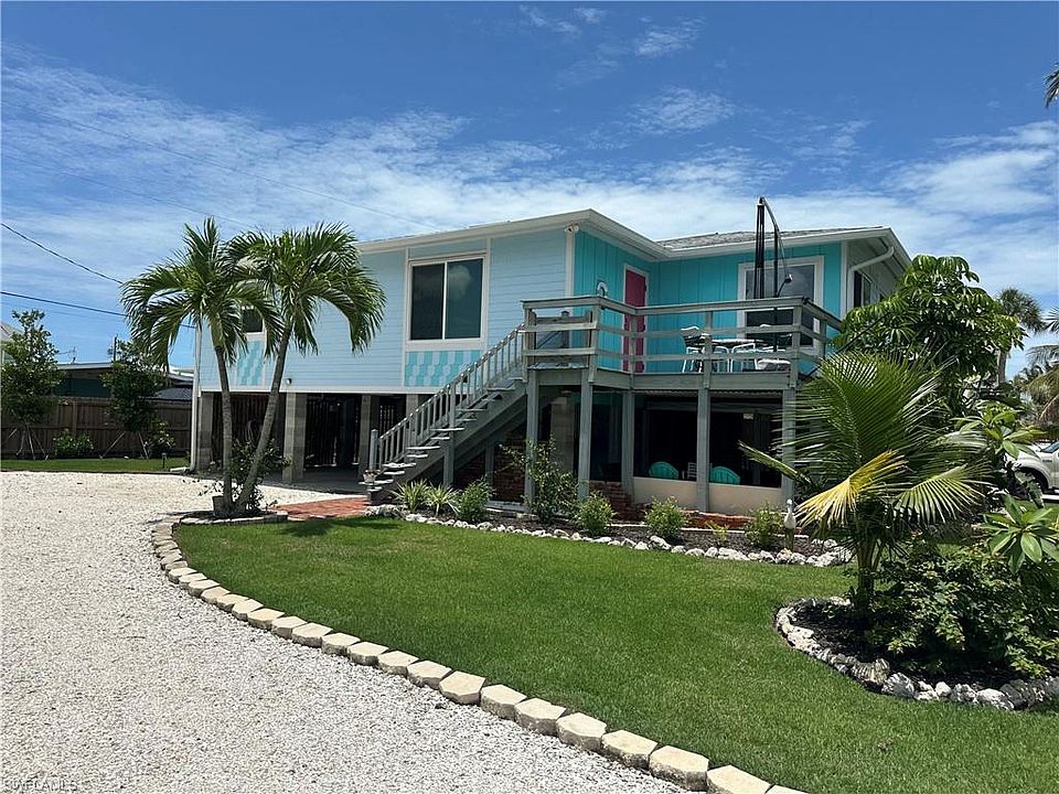 Beautiful Elevated home with Beach Views and only blocks from the beach. Expansive lot, impeccably landscaped. Spacious home is a perfect getaway or a lovely home to live year-round. Take advantage of everything Fort Myers Beach has to offer: Sun, Sand, Restaurants, Shopping, and more. A short distance from highways and RSW Airport. Priced to sell, this is an investment opportunity that should not be missed. The home is sold fully furnished and perfectly maintained.