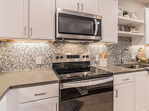- Exterior features: $0 Deposit, Bocce Court, Brash-Finish Features Faucet's*, Controlled Keyless Fob Access, Custom Cabinetry with Under-Mounted Lighting, Detached Garages Available, Fire Pit, Flex Rent, Framed Vanity Mirrors, Front-Lit Bathroom Mirrors*, Game Room, Kitchen Island with Breakfast Bar, Lawn, Mailroom with Amazon Hub Lockers, Moderns Closet Organizing Systems*, Outdoor Kitchen with Gas Grills, Pet Park, Pickleball Courts, Poolside Veranda with Ping Pong Table & TV, Quartz Countertops, Short Term Lease, Stainless Steel Appliances, Sundeck, Tile Backsplash, Undermounted Sinks with Upgraded Fixtures, Wine Coolers*, Wood Style Flooring, Yale Keyless Entry*, Yoga Studio