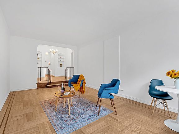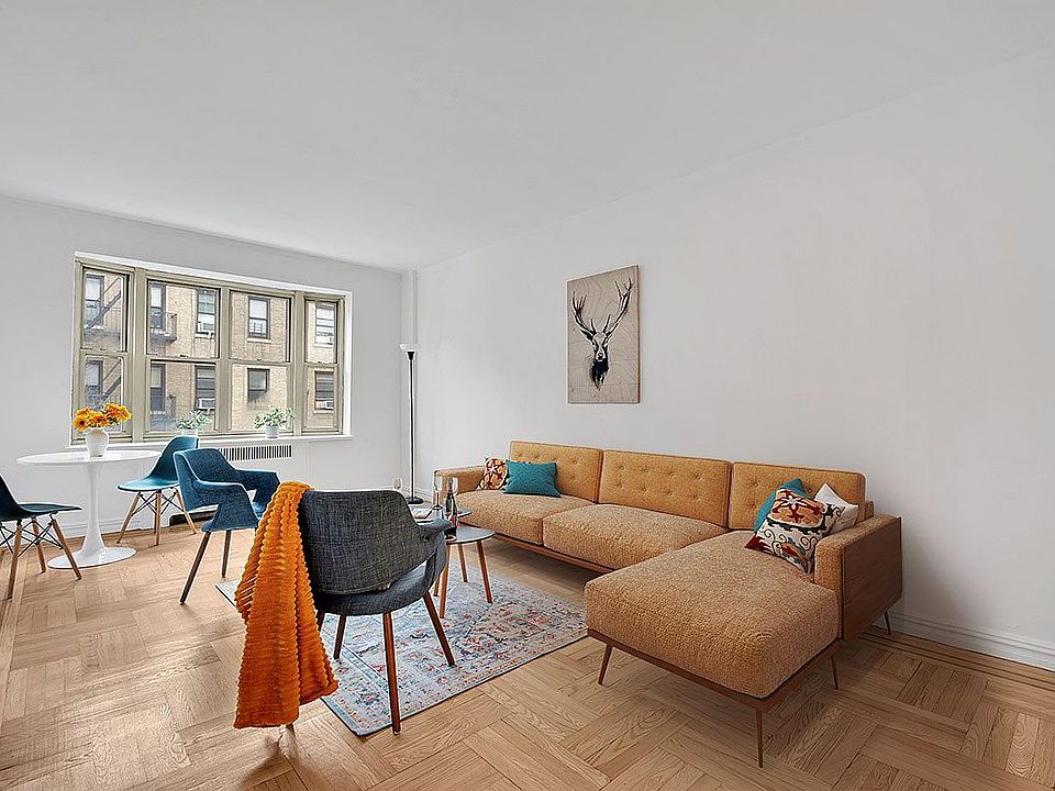 Apartment 4K is found at 120 Bennett Avenue, a coop building oozing historic charm and elegance. This lovingly maintained 4.5 room, two-bedroom, one-bath home promises endless comfort, in its vibrant Hudson Heights neighborhood. The living area of this high-floor residence is graced by natural light pouring in from the East-facing large windows. It has been freshly painted and the floors just refinished. Art Deco details abound: Curved archways; step-down living room; built-in shelving and cupboards.