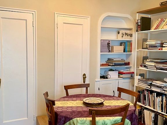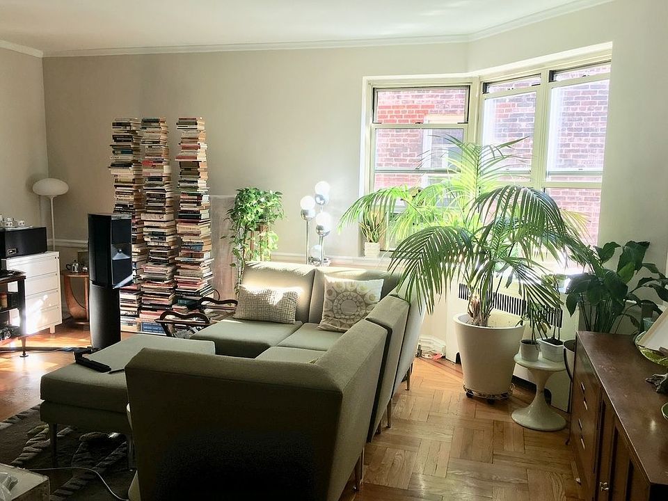 In a beautiful, very clean Art Deco co-op building with a live-in super and porter. Shady patio with benches and plants tended by some of the green-thumbed residents.