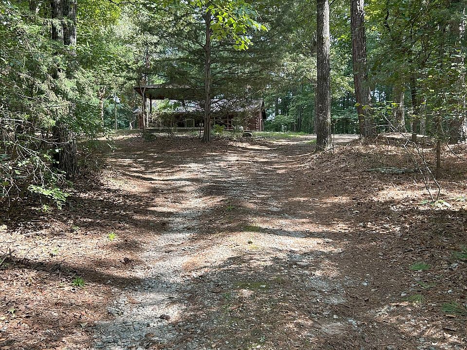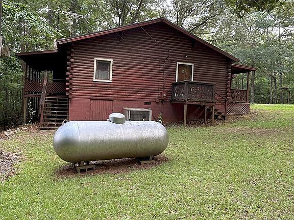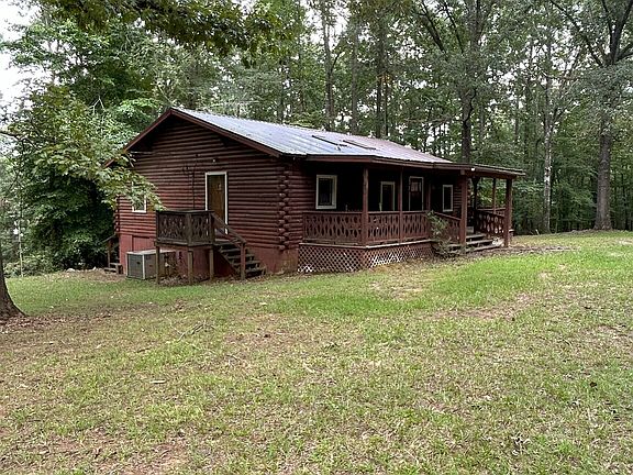 One of a kind Log cabin, nestled for privacy on four plus acres with a circular driveway. Rocking chair front porch, large open family room, with vaulted ceiling and skylights, kitchen, separate dining room, and washer and dryer room. Two bedrooms and one bath. Deck off dining room and family room. Unique light fixtures. Outside you will find a building with a work shop to be used as a garage or pole barn for horses. The gazebo has a well pump built in the middle of it. Sheds and outbuildings. Well-maintained home and land.