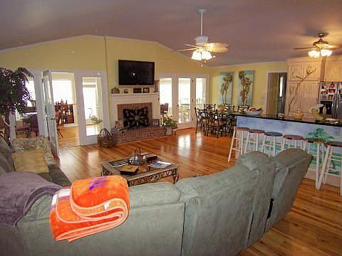 This home has it all. Spacious open home with pool, rec room, spa, outdoor bar, full bath next to pool. Fish or watch the sunset from your 14' x 44' covered deck or entertain from your 12 x 50 fla room. Three bedrooms have private baths.