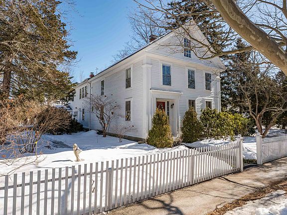 Nestled in Amherst’s Historic District, this 1854 antique home is a harmonious blend of timeless character and modern updates with numerous improvements enhancing the home’s efficiency. With a unique floor plan that is both expansive and intimate, it offers a balance of comfort and elegance. The open concept kitchen/family room radiates warmth with a wood stove framed by exposed brick, offering a retreat for quiet and calm evenings. Classic wood floors and abundant natural light flow through the living and formal dining rooms, enhancing the cozy ambiance. The expansive great room above the barn provides a versatile space for family gatherings. On the second level, the primary suite offers a tranquil haven, complete with a walk-in closet and en-suite bath. The upper level also includes a library, craft room, and three additional bedrooms along with a second full bath. Featuring lush perennial gardens, vibrant flowers, and a towering maple tree, perfect for climbing and reading, the expansive landscaping enhances the vibrancy of this property. The large barn provides ample space for a one-car garage, additional storage, or even a workshop. Just a short stroll from Amherst Village Green, this home is well positioned to enjoy the charm of seasonal festivities and a small-town community. Whether gathered by the fire, savoring a peaceful morning in the garden, or hosting celebrations, this exceptional home embodies the elegance of the past while embracing the ease of modern living.