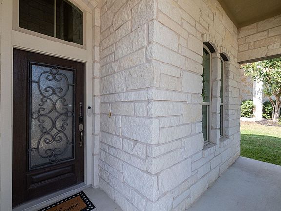 Welcome to this immaculate, move-in-ready home located in the highly sought-after Teravista community. This spacious residence offers 4 bedrooms, 3 full bathrooms, and a dedicated office, thoughtfully designed for both comfort and functionality. The upgraded kitchen features granite countertops, elegant cabinetry, and a gas range, seamlessly flowing into the dining and living areas—highlighted by a custom built-in wine rack. The desirable split floor plan places the primary suite on one side of the main level, complete with dual vanities, a garden tub, and a separate shower. Two additional bedrooms and a full bathroom are situated on the opposite side, ideal for privacy. Upstairs, you’ll find a generous second living area, a fourth bedroom, and a third full bathroom—perfect for guests or a private retreat. Enjoy outdoor living with a covered front porch, covered back patio, and a gated entrance to a park-like greenbelt. The home also features a two-car garage and a fully plumbed sprinkler system maintaining beautifully manicured front and back yards. Just a short walk to the park, and with access to a community center, three pools, and the Teravista golf course, this home supports an active lifestyle. Ideally located just five minutes from I-35 and close to shopping, dining, medical facilities, and the campuses of Texas A&M, Texas State University, and ACC—this is a home that truly has it all.