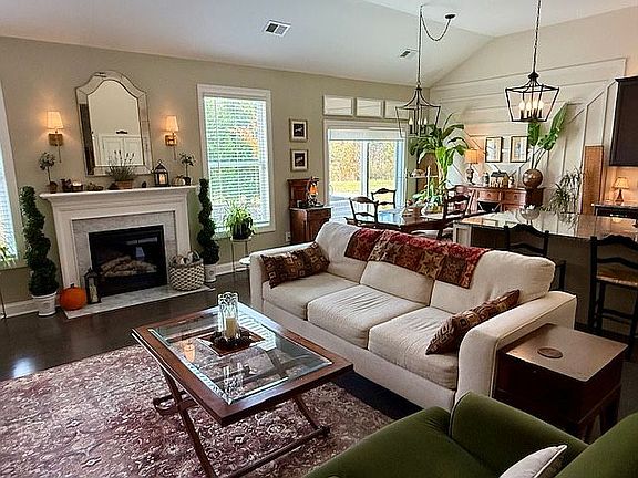 Spacious entry and living room. Large kitchen granite island. Natural gas stove with warming drawer. High ceilings. Beautiful and private backyard with scenic view of trees. Wainscoting and crown molding. Great neighbors. 2-car garage. Hardi plank siding. Ready for whole-house generator. Private patio with hedges.