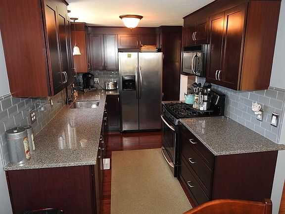 The Willows of Marlborough!-End Unit-Spacious beautifully taken care of. First floor has updated bath, bamboo floors, Galley fully applianced kitchen with stainless steel appliances, dining room-living room has wood burning fireplace and deck. Updated lighting thru out, updated furnace, and hot water tank. Second floor has 2 generous bedrooms with lots of closet space and 2 full baths. Third floor has family room with sky light. Gas FHA heat and Central Air, plus security system-One car under garage, with space for 2 cars in the driveway