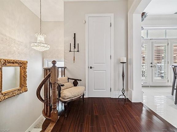Welcome to this stunning executive townhome in the heart of Bronte Village, where classic, timeless design meets lakeside living. This beautifully updated 3-bedroom, 3-bathroom home offers sophisticated style, high-end finishes, and a private rooftop terrace with breathtaking lake views - the perfect place to unwind or entertain. Step inside and discover a bright, open-concept layout enhanced by beautiful décor, elegant hardwood floors, and designer lighting throughout. The gourmet kitchen features premium stainless-steel appliances, quartz and granite countertops, heated floor and custom cabinetry-ideal for both everyday living and hosting family & friends. The private elevator provides effortless access to all levels, from the garage up to and including the stunning rooftop terrace, where you can enjoy views of Lake Ontario and the charming Bronte harbourfront. The spacious primary suite boasts a spa-inspired ensuite and generous closet space, offering a tranquil retreat at the end of the day. With its prime location just steps to waterfront trails, boutique shops, cafés, and restaurants, this home captures the best of urban convenience and lakeside charm. A definite must-see to experience the many updates and features this home offers. Other Highlights Include: Double Garage and Driveway for 4 Vehicle Parking, Designer Interior Décor with Quality Finishes, Heated Floor in Kitchen and Ensuite Bath & Basement Rec Room, Spacious Bedrooms, California Shutters Through-out, Hardwood Floors Through-out, Two Gas Fireplaces, Two Balconies on Main Level, Walk-out to Courtyard on Lower Level and plenty of storage. This Home is Perfection from Top to Bottom. Full List of Features and Upgrades Available.
