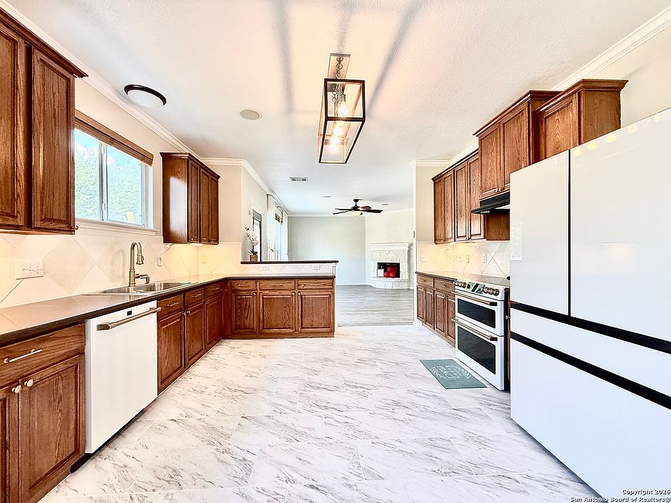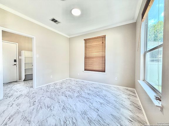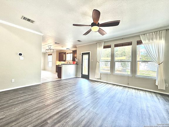 Welcome to 120 Brook Meadows a spacious and well maintained 3-bedroom, 2.5-bath home with an office / flexible floor plan, located in the desirable Charleston Parke community. Now at an improved price of $319,000. this home blends style, space, and value in one inviting package. Inside, you'll find: 2,474 Sq ft of living space, ideal for all families or all remote professionals A dedicated front office or flex space for working from home or creative use. A stunning stone fireplace and chimney that creates a warm, architectural focal point in the main living area. Open concept kitchen with 42" cabinetry, breakfast bar, and plenty of pantry storage. Tile flooring and crown molding throughout the main level for a polished finish. Spacious primary suite with walk-in closet and dual vanities in the ensuite bath Step outside and enjoy a backyard designed for comfort and connection: Mature crape myrtle trees provide color, privacy, and shade Covered patio with outdoor furniture and sail shade, perfect for relaxing or entertaining year round. Fully fenced and spacious ideal for pets, gardening, or play. Located on a quiet cul-de-sac in an established community with convenient access to IH-35, Randolph AFB, schools, parks, and shopping, this home delivers comfort and livability both inside and out.