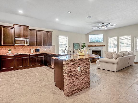 Stunning 1.5-story home on cul-de-sac lot in the Kinderwood section of Woodforest, zoned to MISD schools! High ceilings make grand first impression, leading to private study & formal dining room. Expansive kitchen, featuring stone accent wall, ample cabinets & counter space, breakfast bar, & butler’s pantry, flows seamlessly to the inviting living room w/corner fireplace. Luxurious primary suite offers dual sinks, soaking tub, separate shower, & generous walk-in closet, while 2 additional bedrooms with jack-n-jill bath are conveniently located on 1st floor. Upstairs, spacious game room, additional bedroom, & full bath complete the half-story layout. Step outside to fully fenced backyard w/extended patio, pergola, & storage shed—perfect for gatherings. Two-car attached garage & access to top-tier amenities, including pools, parks, trails, & neighborhood events, this home perfectly blends comfort and community. Recent updates include new microwave, water heaters, and brand-new ROOF!