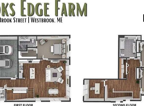 The Pride design is a spacious two-story cottage that greets you with a large covered front porch, leading into a tiled mudroom with access to the two car garage. The kitchen, dining area, and living room all share the same inclusive floor plan that opens to a large deck at the rear; enjoying views of the rolling landscape Brooks Edge Farm offers. A balcony staircase brings you from the first floor living space up to a common hallway and den. The additional full bathroom, a laundry room, linen closet, as well as two bedrooms are all located on the second floor. The primary suite is located on the first floor and comes standard with a walk-in closet, granite countertop vanity, and large shower. Customize this floor plan to your own needs with optional additions such as a first floor washer/dryer hookup, a second floor enclosed office, or seasonal bonus room off the living space, plus more! Most Pride style units at Brooks Edge Farm come standard with a full sized unfinished basement for storage/utilities and some daylight units will have expansion potential for additional bedroom needs.