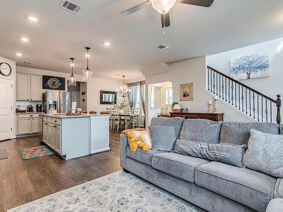 This stunning home is ready for the you to make Dripping Springs and the beautiful Texas Hill Country your home. The open concept floor plan allows natural light to radiate through the main level while the gorgeous kitchen design makes you want to have friends over for your "at home" party. Situated on a manicured lot with an inviting front porch on a quiet street, this home is within walking distance to Founders Pool and Park, city playgrounds, community walking trails, the farmers market and downtown Drip! We are proud to offer wood flooring throughout the living area and kitchen, painted cabinets, ornamental metal railing on the stairs, and an additional exterior door to access a fenced side yard. Walk to the grocery store and all the cute shops and pubs in downtown Dripping Springs.