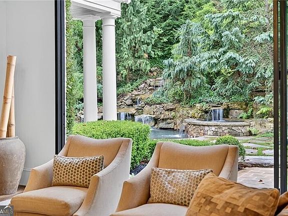 Gorgeous recent renovation by Ladisic Homes on 1+/- acre of land, perfectly situated at the end of a gated cul-de-sac street. Features include high ceilings, beautiful moldings, and entertainer's dream floorplan. The stunning kitchen features a large quartzite island, Wolf range, and Sub-Zero refrigerator, and opens seamlessly to a keeping room w/ reclaimed wood beamed ceiling and walls of iron doors and windows. Enjoy effortless indoor/outdoor living with a walkout pool and spa from the main level living spaces. A spacious mudroom, walk in pantries, and oversized laundry room are conveniently located off the three-car garage. The main-level primary suite offers a serene retreat with a sitting area and iron windows overlooking a tranquil wooded setting with a stream. The luxurious bath includes dual vanities, a soaking tub, separate shower, and large walk-in closet. The newly finished terrace level includes a fun custom bar/ pub area, media room, gym with sauna, and flex spaces. Upstairs, you'll find four spacious en-suite bedrooms plus a large bonus/flex room. Located just minutes from top-rated private schools, Heards Ferry and Riverwood district, Chastain Park, shopping, and dining-this home truly has it all.