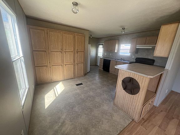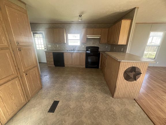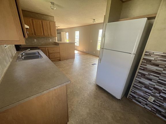 2006 three bedroom, two bathroom single wide for rent! 16 x 80 single wide with lots of extra space. New, large, front porch for entertaining with brand new metal underpinning to help with insulation. Kitchen is furnished with a stove, refrigerator and dishwasher. Lots of cabinets and countertop space for storage & cooking. Separate walk in laundry room hidden behind kitchen cabinet doors with hanging racks for drying/hanging clothes on. Master bedroom features walk in closet and master bathroom attached with a large garden tub plus a separate walk-in shower with double shower seats.