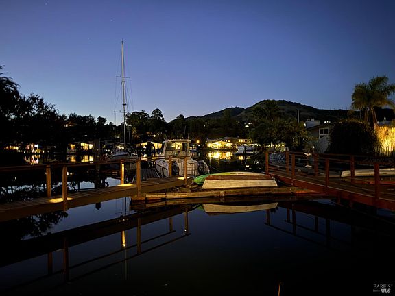 Discover a lifestyle where every day feels like a vacation in this cherished 4 bedroom, 2.5 bath custom waterfront home. Built for himself by a prominent Marin builder, and remaining in the family for over 60 years, this property offers a rare sense of legacy and history.The home is perfectly situated on a sheltered cove off the San Rafael Canal, complete with a shared deep-water dock and its own private boat slip, also ideal for launching kayaks and stand up paddleboards.A home designed for light and flow, the living room boasts vaulted ceilings and a classic stone fireplace, while a comfortable family room off the kitchen features a second fireplace, dining area, and a built-in wet bar. Both primary gathering spaces open via sliders to a generous, sun-drenched patio-a tranquil and expansive setting for relaxing or entertaining with views of the water.The property is just down the street from Pickleweed Park, with a sports field, picnic area, and playground, and minutes from Highway 101. A large three-car garage plus bonus storage spaces provide ample room for everything.