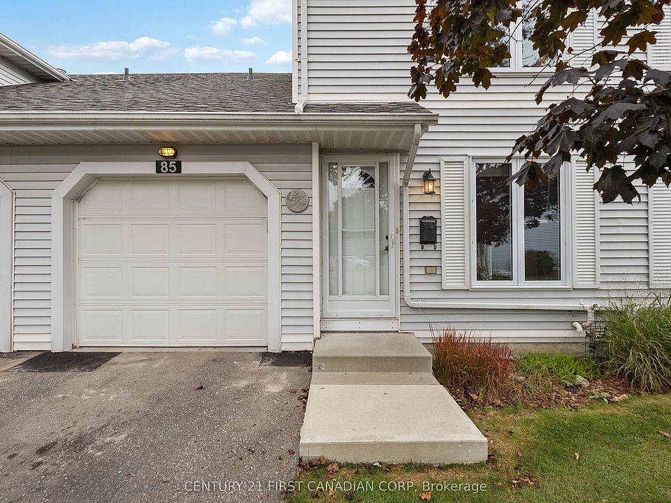 Welcome to Hillside Heights! This desirable Condo Community is well managed, well maintained, has low maintenance fees and is family and pet friendly. Unit #85 is a west facing unit that backs onto a parklike open green space that is accessible from the private fenced patio. The main floor has inside access from the garage, a large eat in kitchen, dining room, living room and 2pc bathroom. Upstairs the large primary bedroom easily fits a king sized bed, a bureau/desk and has a walk in closet. The generous second bedroom also has a walk in closet and the third bedroom has a double closet. The second floor bathroom is a 4pc with new tub with modified access.