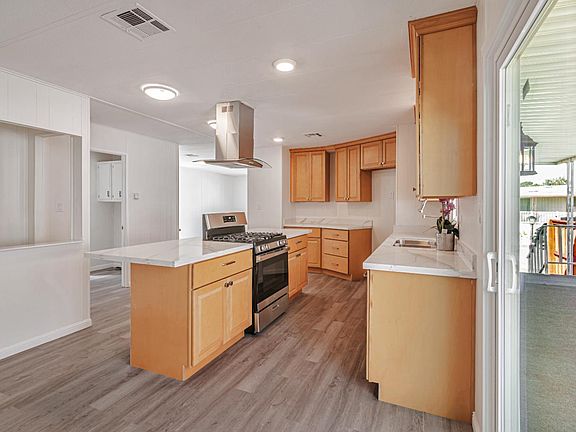 Recently Remodeled Double Wide. Situated in Country Club Estates, one of Fairfield's most Desirable Mobile Home Parks. Large Covered Front Porch Deck. Carport Porch. 1368 Sq.Ft. 2 Bedroom & 2 Full Baths. New Laminate Flooring Throughout. Large Quartz Counter Top Kitchen Island. Stainless Deep Double Sink with Pull Out Faucet Under Kitchen Window. Newer Kitchen Cabinets. Newer Matching Stainless Kitchen Appliances. Newer Stainless Gas Range with Newer Beautiful Stainless Range Hood Vent. Newer Lighting Throughout. Remodeled Bathrooms with Laminate Flooring. Quartz Counter Vanity Tops in Bathrooms. Large Sunken Tub in Master Bath + Shower Stall. Newer Marble Shower Enclosure in Hall Bathroom. Newer Toilets. Large Laundry Room. Open Floor Plan. Central Heat & Air Conditioning. Newer Dual Pane Windows. Newer Fixtures, Electrical Plugs & Switches. 4 Car Parking. Low Maintenance Landscaping. $700 Space Rent Includes: Water, Sewer & Trash. Association Owned Non Profit Mobile Home Park.
