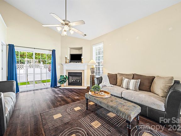 With a private backdrop of trees, this immaculately maintained, PRIMARY ON MAIN AND END UNIT townhome will leave you nothing short of impressed! A covered front porch greets you as you make your way into the open & light-filled floor plan, with gleaming vinyl plank flooring that runs throughout the common areas and bathrooms. The primary bedroom on the main floor has an expansive walk-in closet, ensuite bathroom, and views of the backyard. The kitchen boasts granite counters, stainless steel stove (new in 2025), stainless steel refrigerator conveying with the home (new in 2025), extra pantry space, and dining area. The great room is centered by a gas fireplace, and looks onto the fenced and private yard. No details were spared with turf installed in the rear yard and ample patio area, the perfect space for enjoying a morning coffee or entertaining friends. Rounding off the downstairs is a half bathroom and laundry space. As you head upstairs you'll find 2 secondary bedrooms and full bathroom as well. Tons of improvements have been made during ownership, including the AC/furnace is less than 5 years old, washer and dryer conveying, all 3 toilets were replaced, shower fixtures in both bathrooms were changed out, and the primary bathroom faucet was updated - the entire home has been lovingly maintained. Fieldstone has one of the most central locations in Fort Mill, just minutes from I-77, located right off SC-160 and by Gold Hill Rd, and has excellent community amenities including an outdoor pool, clubhouse, and sidewalks. This home has 2 designated parking spaces directly out front, and with low SC taxes and award winning schools, look no further for your perfect Fort Mill home!
