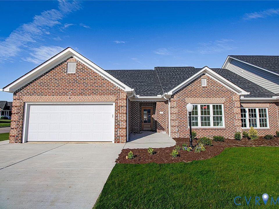 Experience luxurious one level living in this beautifully crafted 1,530 sq. ft. rancher located in the sought after age restricted community of Cobblestone. This all-brick home with elegant quoin corners offers premium upgrades throughout and a thoughtful layout designed for comfort and style. Featuring 2 spacious bedrooms and 2 full baths, this home boasts waterproof hardwood flooring, quartz countertops in both kitchen and baths, and a custom paint finish on the kitchen cabinets. The eat-in kitchen shines with stainless steel appliances and a sleek ceramic tile backsplash. Relax by the cozy fireplace with a marble surround, or unwind outdoors on the private rear patio. The primary suite includes a ceramic tile shower and beautifully tiled bath spaces. Modern efficiency meets comfort with a dual fuel heat pump and a tankless hot water heater. The exterior is equally impressive with a stunning mahogany wood front door and a fully sodded front yard complete with irrigation. Don’t miss this exceptional opportunity to enjoy upscale living in Cobblestone!