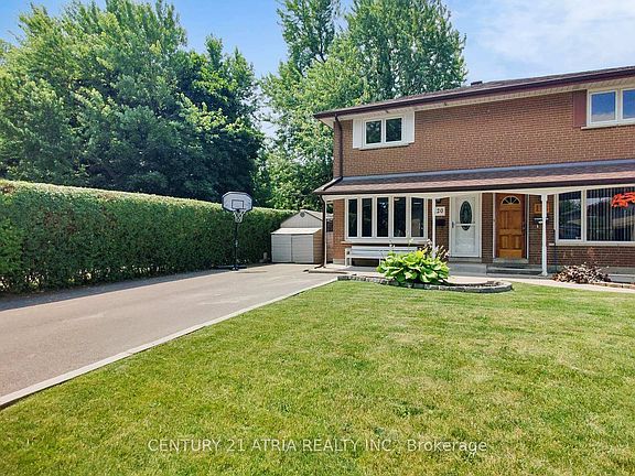 Charming & spacious 4 bedroom, 2.5 bath semi on a premium lot with park-like setting. Home is perfectly located at the end of a quiet Cul-De-Sac, backing onto Woodview Park and Fletchers Creek. Step inside to a bright and open concept main floor, featuring a large living and dining space perfect for daily living and entertaining. The spacious kitchen includes stainless steel appliances, ample cabinetry and a clear view of the beautiful backyard. Upstairs, you'll find four generously sized bedrooms, including a primary suite that fits a king-size bed, has a double mirrored closet and large window. The finished basement adds versatile space with an additional bedroom and a rec room ideal for a home office, playroom or media space. Recent updates include new windows throughout (2021) and a newly repaved driveway (2022). A large backyard deck makes outdoor entertaining a breeze with a park-like backyard thats ideal for children, entertaining or simply enjoying the outdoors plus a generous front yard with 7ft hedges and a private driveway that fits 5 vehicles. Located just minutes from Zum transit, excellent schools, restaurants, shopping and a short walk to downtown Brampton, this home offers the perfect mix of privacy, space and convenience.