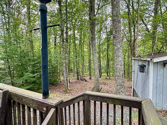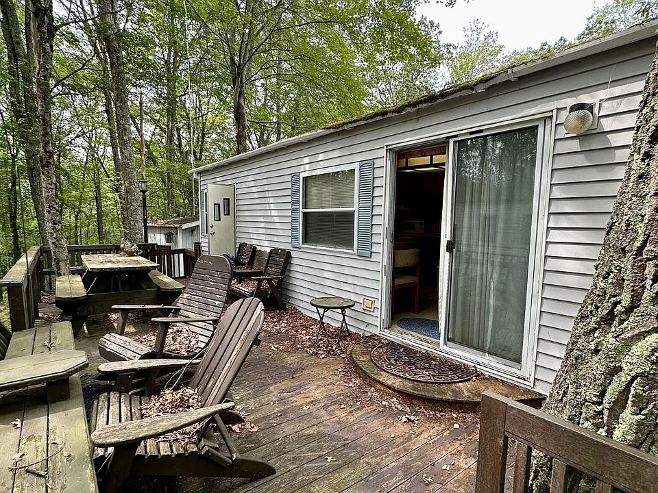 The Lake Adventure is calling your name for a perfect Summer Getaway located in the Poconos of Pennsylvania. 5 minutes off I-84, you enter a different world, among the woods. With beach access to the lake, pool to swim in, basketball courts, soccer field, & even summer camps for the kids, it speaks Summer Fun! This is a mobile home, with a property that is backed up to the Game Lands. Step off the back porch and venture into the woods, have a fire, make a tire swing on a tree. It has two bedrooms, full closet space, functioning kitchen with hidden additional counter space, dining area, living area, and full bathroom with a tub! At night, step out onto the deck to enjoy the stars where there is minimal light pollution. The driveway can comfortably fit two full sized SUVs!