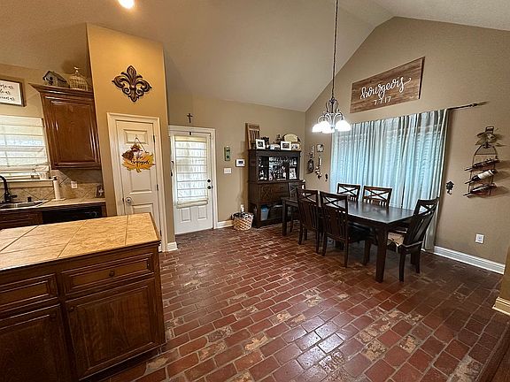This 3 bedroom, 2 bath house is located in Abby Lakes Subdivision in a quiet Cul De Sac. It was built in December 2012 featuring beautiful Cathedral style ceiling in the kitchen/dining with brick floor, wood floors through out, and tile in the bathrooms and laundry room. The spacious Master Suite includes a large walk in closet and a custom shower and jacuzzi tub. Recent upgrades include an AC unit replaced 6 years ago, and a roof that is only 4 years old. Relax on the covered patio overseeing a large fenced in yard.