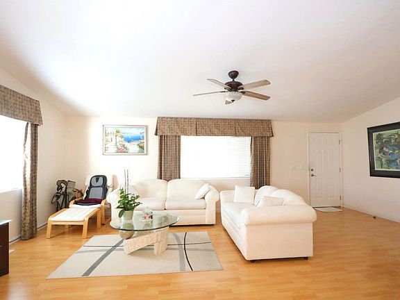 Beautiful 1995 doublewide Golden West home with 3 bedrooms and 2 baths approx: 1664 Sq Ft. SERIAL: GW6CALGV11326A/B perfect for all families! Spacious living room with pergo flooring and ceiling fan with lights. Dining room area with light fixture and pergo flooring. Kitchen features granite countertops, tile floors and includes built-in microwave, refrigerator, dishwasher, gas-stove-oven and garbage disposal. Both guest bedrooms feature ceiling light and carpet flooring. Cozy guest bathroom highlights a tub & shower combo, sliding glass door, medicine cabinet, granite countertops and tile flooring. Lovely master bedroom with ceiling fan with lights, mirrored walk-in closet and carpet flooring. Ravishing master bathroom with tub &shower combo, double sinks, medicine cabinet and linoleum flooring. Wood exterior, double pane windows throughout, 1 shed, washer & dryer included and 2 car carport parking available. Park is close by shopping center, a variety of restaurants and major freeways!
