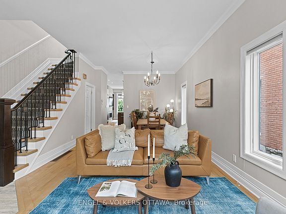 This beautifully renovated 2-storey family home is nestled on a peaceful dead-end street in Old Ottawa East. As you step inside, you're greeted by a sun-filled, open-concept living room, with abundant natural light pouring through tall windows. The hardwood floors, elegant crown moulding, and recessed lighting create a warm, welcoming atmosphere, seamlessly connecting the living and dining spaces. The modern kitchen is a chef's dream, featuring high-end appliances, quartz countertops, and a spacious central island with a second sink, perfect for both cooking and entertaining. Beyond the kitchen, a cozy family room offers a rear-facing window, a gas fireplace, and direct access to the mudroom at the rear entrance. Upstairs, the primary bedroom is a bright, serene retreat, complete with built-ins and a 3-piece ensuite with a walk-in shower. Two additional bedrooms on this level share a beautifully designed bathroom with a tub/shower combo. The finished basement adds versatility, with a large recreation room, two bedrooms, and a 3-piece bathroom. The private backyard features a wooden deck with a built-in natural gas fire table, landscaped gardens with a sprinkler system (front & back yards), and a detached garage offering both parking and extra storage. Located just behind Immaculata High School, a block from the Rideau Canal and minutes from Main Street, this vibrant neighbourhood is known for its strong sense of community and friendly atmosphere, making it the perfect place to call home.