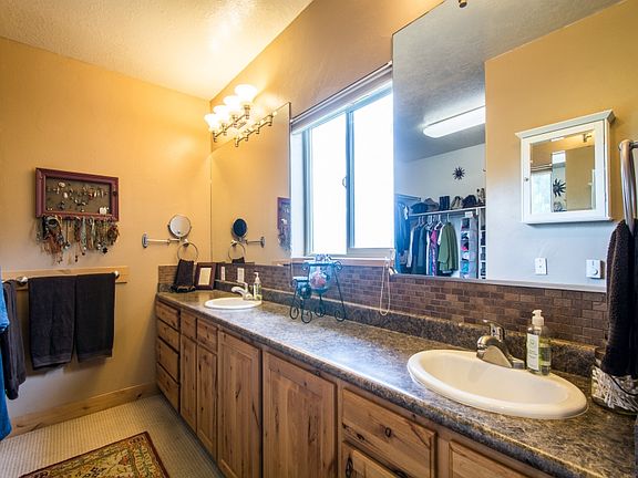 Perfect country living, this home features an open kitchen/dining and family room w/gas fireplace, sill stone counter tops, knotty alder cabinets and pantry, double ovens and a gas range. The master bathroom has two sinks, a large walk-in closet, a spa tub and large shower with double heads. Home sits on 2.66 acres with water shares and pressurized field irrigation. Home has large 3 car garage. The covered patio is setup for a gas grill and spectacular views. The large open entry includes 4 ft wide stairs to a finished basement with 2 bedrooms, a full bath, large family/movie room, and a spacious craft/office or bedroom. The 24'x36' outbuilding is heated and used as a workshop could also serve as a garage. *Buyer to verify all information in listing*
