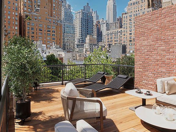 Beneath an exquisite brownstone, brick, and terra cotta façade, this special home captures the essence of townhouse living moments from exciting dining, shopping, and culture in prime Midtown Manhattan. A private terrace offers rare outdoor space and the perfect place to entertain, grill, sunbathe, and more.