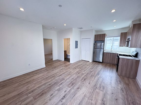 Welcome to this stylish and newly built 1 bedroom, 1 bathroom apartment. This bright and airy unit features: Open concept living area with recessed lighting Brand new wood-look vinyl flooring throughout Spacious kitchen with stainless steel appliances and wood-grain cabinetry Ample counter space and storage In-unit washer/dryer hookups for convenience air conditioning and heat for year-round comfort Large windows providing plenty of natural light Bedroom with mirrored closet doors Contemporary bathroom with marble-look tiled shower Fresh neutral paint and modern fixtures This well-designed apartment offers the perfect blend of style and functionality in an efficient layout. The open floor plan and high-end finishes create an inviting space to call home. With its updated features and great location, this unit won't last long. Schedule a viewing today!