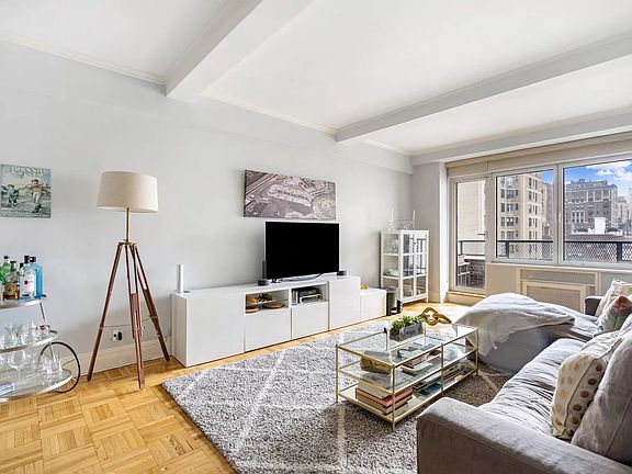 Sunset views from this bright high floor, renovated 2 bedroom, 2 bathroom home, right off Park Avenue. Sunlight streams into the north-facing living room, making this apartment a joyous space to entertain and live in. Custom living room built-ins provide even more storage and space to display decorations, books, and more. Watch the sunset or enjoy your morning coffee on your private 5' x 13' balcony just off the living room, as you take in and enjoy the open city views. Enter the apartment through an entry hall that leads into a foyer. A designated dining area is to the right, large enough to fit a table for 8, complete with a chair rail and crown moldings. The dining room is conveniently located just off the renovated, windowed kitchen that features top of the line stainless steel appliances and granite countertops. Two spacious bedrooms are located just past the living areas, entered through a hallway with a bedroom on either end. Each bedroom has its own newly renovated bathroom as well as generous closet space. The primary bedroom receives its light from it's northern exposures, while the second large bedroom has bright south eastern exposures. Built in 1947, 120 East 79th Street is a boutique building complete with a 24-7 doorman, live-in super, laundry, fitness and bike room. Conveniently located near Madison Avenue shopping, the Lexington Avenue 4,5,6 subway line, the Madison and 5th Avenue bus lines, and the world's best museums, restaurants, and parks, this is an opportunity not to miss! There is a 2% Flip tax. Showings permitted Monday - Saturday.