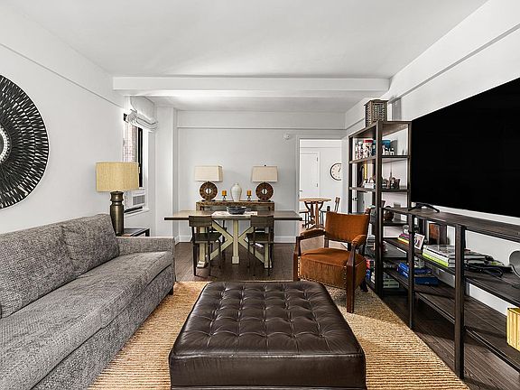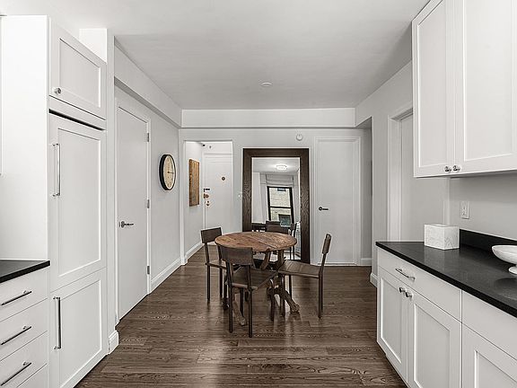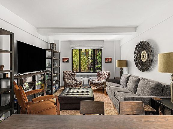 With only four apartments per floor, the building has a small boutique atmosphere, complete with a canopied entrance and a common planted and furnished garden in the rear. Amenities include a full-time doorman, live-in resident manager, porters, laundry room, bike room, and fitness room. Storage is available subject to a waitlist. This non-smoking and pet-friendly building permits pied-à-terre buyers at the board's discretion.