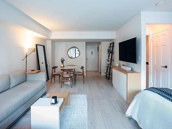 NEWLY RENOVATED SPACIOUS STUDIO IN FULL-SERVICE DOORMAN BUILDING—IDEAL FOR FULL-TIME RESIDENCE OR PIED-A-TERRE. This beautifully designed studio in a full-service Carnegie Hill condo building combines elevated décor with function. The unit features distinct living and dining areas, a ‘bedroom’ alcove which provides separation, and high-end built-in units (murphy bed, office desk, TV console) offering practicality, storage and space-saving all at once. Aspen hardwood floors, custom millwork and brand-new appliances give the space a warm yet sophisticated feel. Ideally located near Central Park, Museum Mile, and the 4/5/6 subway lines, this rare, move-in ready Upper East Side studio delivers both charm and convenience.