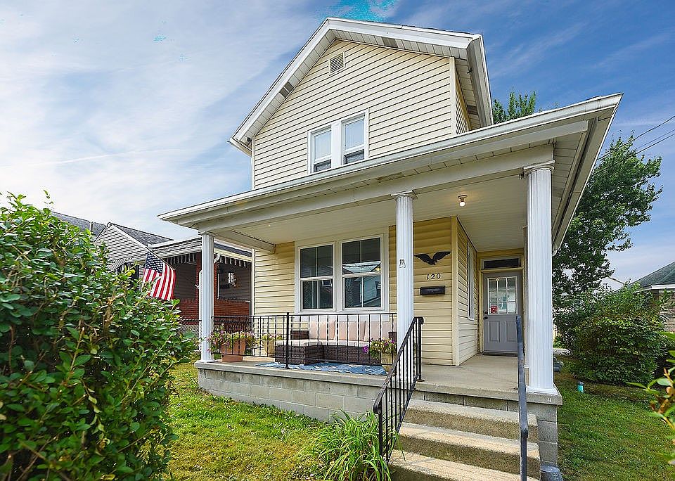 Welcome Home! This tastefully updated home blends timeless charm with everyday comfort. A charming wraparound porch invites you inside, where you’ll find a nice sized living room, large kitchen, convenient mudroom and beautiful newer LVP flooring throughout the main level. The kitchen is fresh and bright and equipped with newer appliances, and the mudroom, and the full bath with laundry sits just off the back entry. Upstairs your will find 2 spacious bedrooms with ample closet space and an updated half bath. Outdoors, enjoy a beautifully shaded yard space perfect for relaxing or entertaining, plus an additional parking pad for extra convenience. Move-in ready and full of character, this home offers both charm and practicality. 1 year home warranty offered for peace of mind.