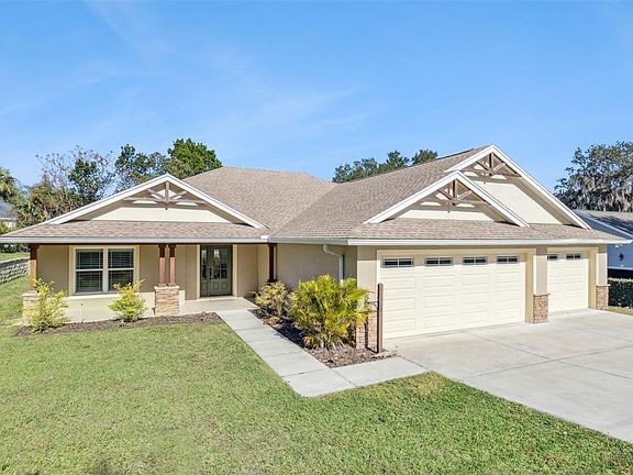 Live the Ultimate Florida Lifestyle with Nearby Direct Access to the Harris Chain of Lakes! Fall in love with this beautifully upgraded and meticulously maintained home offering a rare opportunity to enjoy waterfront living without the waterfront price. Located close to all of the best towns including Mount Dora, Tavares, and Leesburg - you’ll be surrounded by some of Central Florida’s best dining, shopping, and entertainment, plus all the waterfront restaurants & bars—all while being able to connect to the Harris Chain of Lakes! Step inside to discover stunning ceramic plank, wood-look tile throughout the main living areas, creating a seamless and elegant flow. The open-concept design showcases a gourmet kitchen that is truly the heart of the home, featuring an extra-long quartz island, stainless steel appliances, backsplash, 42” upper cabinets, rich espresso cabinetry on the island, soft-close drawers, and a stylish hood vent. A huge walk-in pantry with shelving adds both beauty and functionality. The spacious living and dining areas overlook a completely private backyard, surrounded by serene views—perfect for relaxing, entertaining, or letting your pets roam, as the yard can easily be fenced. There’s also plenty of room to add a pool, making this home ideal for outdoor Florida living. The primary suite is a true retreat with plantation shutters, 5¼” baseboards, TWO walk-in closets, and a luxurious ensuite bath featuring dual sink vanities with quartz countertops and a gorgeous custom-tiled shower that extends all the way to the ceiling. The secondary bathroom is equally impressive with custom tile to the ceiling and upgraded finishes. Quartz countertops throughout the home elevate the overall design and feel. Additional highlights include a full three-car garage with a 4-foot extension, high ceilings, plantation shutters, and countless thoughtful upgrades that make this home stand out. As an added bonus, this home can be sold fully furnished with a fishing boat, allowing you to start enjoying the lake lifestyle from day one. **Please note: The furniture and fishing boat can be sold separately outside of contract. Best of all, you have nearby direct access to Central Florida’s premier boating, fishing, and waterfront restaurants, bars & lifestyle—with public nearby boat ramp connected to none other than the highly sought-after Harris Chain of Lakes. This is Florida living at its finest! Call today to schedule your private tour!