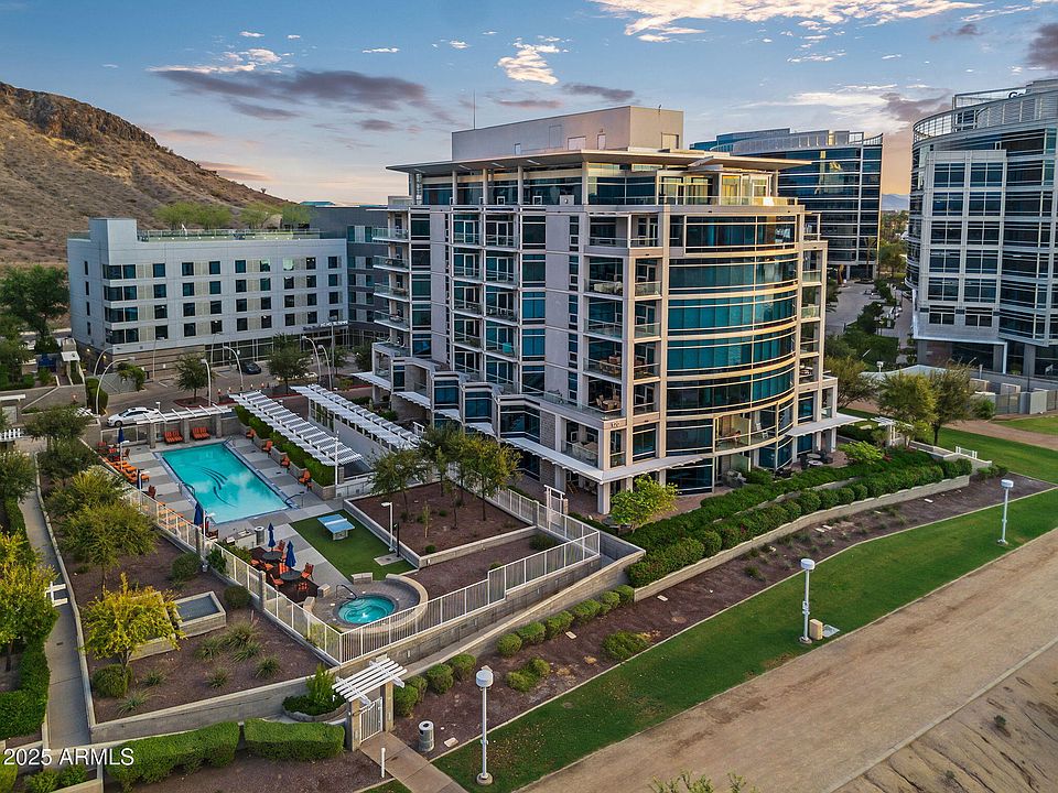 Live your dream life here! You will fall in love with this gorgeous 2 bedroom, 2 bath high rise condo overlooking Tempe Town Lake. Sellers will pay the first 6 months of the Buyer's HOA fees (an $8,130 value!). The elevated 4th floor location provides spectacular views of the lake, mountains, pool & twinkling city lights. The home is light & bright with floor-to-ceiling windows & two balconies. The Edgewater provides the ultimate in resort-style living plus the best location in Tempe! Jump on the trails to jog/bike along the lake or use the dock to get on the lake to kayak/paddle board. Walkable to all of the fun that vibrant Mill Avenue has to offer. On the edge of the ASU campus, near Tempe Marketplace & minutes to the airport. Across the bridge from the Phoenix Zoo, Desert Botanical... short 15 minute drive to Old Town Scottsdale & a 20 minute drive to downtown Phoenix. Enjoy the carefree lifestyle with concierge service & everything included in the HOA except cable/internet! Yes, all water, sewer, trash, gas, blanket insurance policy, building & grounds maintenance, amenities, doorman & concierge service, etc are INCLUDED! Just a small monthly portion for electricity is paid to HOA. outside of the fee. The incredible resort-style amenities include a heated lap pool, spa, gym, billiards room with fireplace & kitchen, conference room with fireplace & sitting area, outdoor fire pit, BBQ island with sink & pizza oven, outdoor spaces with grass, community garden & more! Manned door/lobby entry with concierge service. High-end, quality construction with triple pane windows and built with steel and concrete - the 7" concrete floors means you never hear a neighbor! Gated underground parking garage with two reserved spaces including EV charger, plus a private large storage locker/cage. The condo is beautiful with gorgeous finishes including wood-look tile throughout - no carpet! The chef's kitchen features handsome cabinetry, granite counters, stylish pendant lights & subway tile backsplash, stainless appliances & a 5 burner gas cooktop. Refrigerator included! The island with barstool seating is open to the great room & perfect for interacting with family while you cook or for entertaining friends. The desirable split floor plan makes the primary suite a true retreat! You'll love the spacious room with great views - plus automated black-out shades on windows & door to your private balcony. Spa-like primary bathroom with separate soak tub & shower, dual sinks on the floating vanity w/ under-cabinet lighting, & private toilet room. Two closets - one inside the bedroom & a large walk-in closet off the bathroom. Wonderful second bedroom with the secondary full bathroom right across the hall. The full size stackable washer/dryer in condo are included! Brand new A/C ($12K!) just installed in 11/2024. Completely move-in ready. Stunning views from every room! Tour this condo today & you will want to call it home!