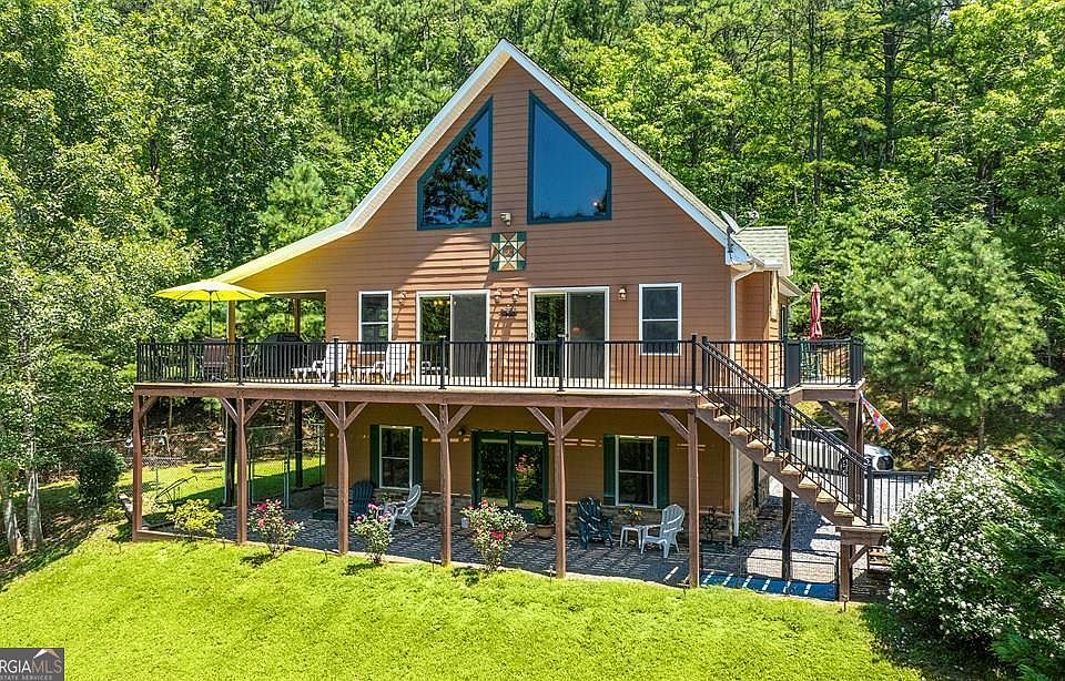 Beautiful Rustic Retreat in the North Carolina Mountains! Embrace the serenity and stunning views of the Nantahala National Forest with this picturesque 3-bedroom, 3-bathroom rustic retreat, perfectly situated on 2.82 acres for ultimate privacy. Key Features include: Expansive Outdoor Living: Full-length wrap-around deck and covered porch that offer up-close and long-range mountain views. Charming Exterior: Beautiful Hardie Board exterior with rock accents, blending seamlessly with the natural surroundings. Warm Interior: Great room with cathedral ceiling , stacked stone gas log fireplace, beautiful mix of T&G wood and drywall, along with a variety of flooring including hardwood, tile, carpet, and vinyl. Spectacular Windows: Wonderful glass front to maximize the breathtaking views and creating a light atmosphere. Functional Spaces: Includes a laundry room, big closets, a loft for an office area, and plenty of storage. Rustic Elegance: Features a beautiful oak stairway adding a classic touch to the home's interior. Pet-Friendly: Fenced dog run and covered area make it the perfect home for pet lovers. Downstairs Amenities: Tile floors, a bathroom, and a versatile garage with a workshop space. Natural Beauty: A small branch at the bottom of the property adds to the tranquil environment. This home is perfect for those seeking a blend of rustic charm and modern convenience, all set in a stunning North Carolina mountain location.