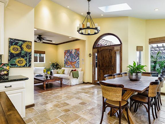 Beyond the gate is a turn key pride of ownership Mediterranean home that will take your breath away! 2 bedrooms & 1 bath on the ground floor with the best of the best!! Arched doorways, wood, tile & carpet flooring, crown molding, 9 ft. ceilings, open floor plan, fireplace and sky lights. Remodeled gourmet kitchen with top of the line stainless steel appliances for the chef of the house. 2nd floor master retreat with see thru glass fireplace & adjoining ''book nook'' relax & chill room. Master bath has dual vanities, dual walk in closets, tiled shower stall, separate soaking/spa tub. Fantastic private outside shower for rinsing off after a day of surfing!! Retreat to the 3rd floor roof top deck with ocean views for entertaining all your guests or on your front patio with a fire pit!