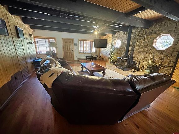 Incredible Opportunity: Dream House with views of the Rio Grande River! Nestled overlooking the Rio Grande River, this four-bedroom, two-bath home offers versatility as a short-term rental, long-term rental, or private residence. Enjoy stunning views and direct access to gold medal trout fishing, rafting, and hiking trails into public land. The exterior features river rock work and flagstone porches. Inside, oak hardwood floors, an updated kitchen with granite countertops, and modern appliances await. The spacious dining area offers expansive views. The main floor has a large master bedroom with a sitting area that could convert into a third bathroom. Upstairs, find three guest bedrooms, a bathroom, and an extra living room with an outdoor deck. The fenced backyard overlooks the river and includes a large hot tub/sauna. A detached garage offers ample storage space, and the home is equipped with a security system. Most furnishings are included, making it vacation rental ready. This home is a unique opportunity to own a piece of paradise where luxury meets nature.