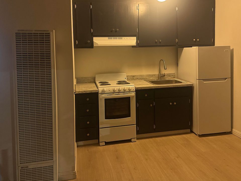 Completely remodeled studio apartment in San Bruno Hills with hardwood floors and brand new appliances. Located inside a quiet 12-unit apartment complex with a locked storage closet, car port, and brand new balconies. Common shared laundry room is located inside the building with Speed Queen washer and dryer.