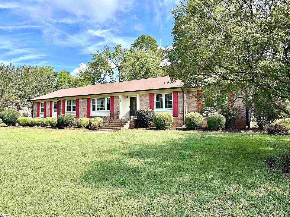 Located just 7 miles west of downtown Greenville, you will find this beautiful, mostly brick ranch home sitting on a unqiue and spacious 0.94 acre parcel in the peaceful and established Westcliffe Subdivision. Westcliff is quiet neighborhood offering larger lots, shade trees, and established landscaping, nestled off Hwy 25 between Greenville and Travelers Rest SC, about 7 minutes to the Swamp Rabbit Trail. Entering the front door, the foyer opens on the left to a bright and spacious living room and then the dining room. As you proceed down the foyer, the floor plan opens up to a lovely great room replete with a cozy fireplace. The updated kitchen  is both off the dining room and great rooms. The kitchen features beautiful wood cabinetry and updated quartz countertops. To the right of the foyer, down the right wing of the home, are 3 bedrooms and 2 baths. The large 15x12 primary bedroom is bright, spacious, and has its own bath. Two other bedrooms with closets and a large walk-in guest bath with duel vanities are on this wing of the home. An extra bonus to the bedrooms are two walk-n cedar closets. Behind the great room is a large screened porch overlooking an expansive lovely backyard that features mature trees and a detached workshop or storage building, set beyond a rustic split rail fence. You can enjoy bird and wildlife watching from the private rear yard and from the peaceful screened porch. Discover this unique property and beautiful one level, brick home.   *There may/might be hardwoods under the carpeting (see primary bedroom cedar walk in closet floor).
