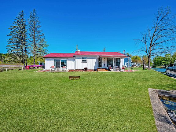 Here is your chance for a lake house that has it all! Just bring your swimsuits and head to this 2 bedroom, 1 bathroom lake house that includes a pontoon, a golf cart and all the furnishings. This meticulously maintained home has prime channel/lake front views with very little upkeep. A metal roof, an updated kitchen in 2018 and a concrete seawall. This home has lots of storage space, in addition to a lofted shed. The lakeside offers a covered concrete patio area. This one is a must see! It really has all you need to start enjoying lake life!