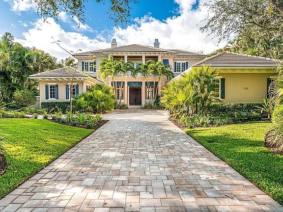 Southern exposure riverfront home with deepwater dock and boat lift. Exceptional view across wide water toward Loggerhead Point. Direct intracoastal access. This stately residence is move-in ready. New roof in 2023. Impact glass with full house generator. Water view from most rooms. Grand living room and formal dining room offer traditional spaces plus a large eat-in island kitchen and family room lead onto a covered veranda with summer kitchen and outdoor fireplace. Expansive saltwater heated pool/spa is perfect for relaxing and enjoying both sunrise and sunset views. Downstairs primary suite, library, and guest suite. Upstairs living area with 2 en suite guest rooms. Three-car, air conditioned garage. Gated community near beach access and natural Jungle Trail for walking and biking. Community tennis and pickleball courts. Options for partially furnished or unfurnished.