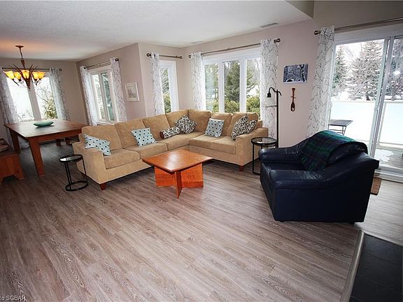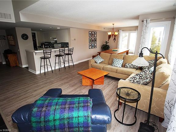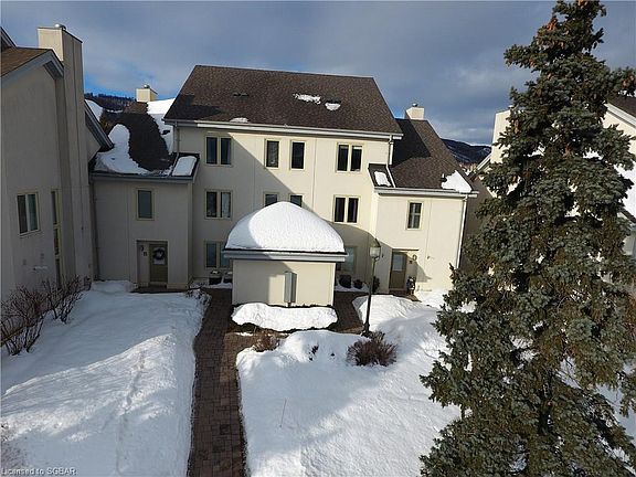 Highly desirable & sought after condominium unit at Sierra Lane. Spacious, well maintained 2nd floor unit with 3 bedrooms, 2.5 baths plus loft area. Enjoy beautiful views of the changing seasons with both day & night time panoramas of the ski hills at Blue Mountain & the adjacent Monterra golf course. Spacious open concept main floor, living room with vaulted ceiling, gas fireplace & walkout to west facing balcony. Tastefully decorated & maintained with neutral colours throughout, newer woodgrain vinyl flooring in main living area. Galley style kitchen with breakfast bar & walk-in pantry for storage. Main floor guest bedroom, 2 piece powder room. 2nd floor offers a spacious master, 4 piece ensuite bath with whirlpool bath. 3rd bedroom with views to the mountain, 4 piece main bath plus a loft/sitting area with wall mounted TV for the kids. Newer on demand hot water boiler with forced air heating/cooler provides for year comfort. Enjoy summers at the in-ground swimming pool or the short drive to Northwind's Beach. Walking distance to the Village at Blue for shopping & dining enjoyment with quick access to the Silver Bullet chairlift which runs year round. Units in this complex seldom come onto the market & offer the four season recreational lifestyle sought by many. Book your showing today!
