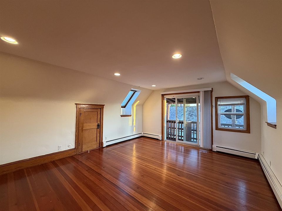 Top floor one bedroom with tons of light and storage Eat in kitchen Hardwood floors Private balcony Skylights Cat friendly No broker fee to tenant