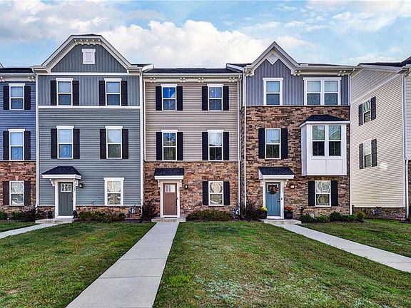 Welcome to maintenance free living at its finest with this beautiful townhome in desirable Legacy at Poquoson! With almost 1,800 sqft of living space, this bright and open floorplan is sure to please. On the first level, you'll find a flex space with a large walk-in closet along with a two-car attached garage. Up the stairs is the main living area with its high ceilings, granite countertops and stainless appliances in the kitchen, and a large island with custom pendant lights. There are also a balcony and a half bath on this level. On the third level you will find a large primary bedroom with tray ceiling, huge closet, and ensuite bath with double vanity and tiled, walk-in shower. There are two more nicely sized bedrooms that share a full bathroom on this level along with the laundry with washer and dryer that both convey. Built in 2023, it is nearly new construction without the wait! Make 120 Fishermans Way your first stop!