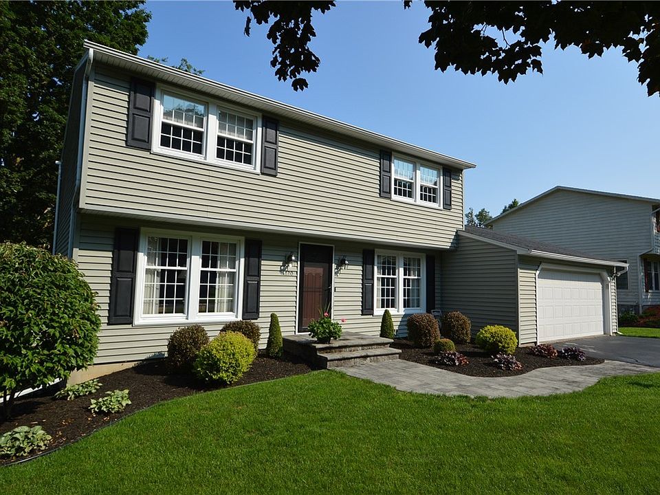 Welcome to 120 Flint Path in the Hidden Knolls neighborhood of Camillus. This 4 bedroom, 1.5 bathroom colonial has been meticulously maintained for decades both inside and out. The first floor offers a flowing floor plan and ease of living centered around a gorgeous eat-in kitchen complete with granite countertops. The space transistions to an inviting living room with a wood-burning fireplace and sliding glass door that allows the room to be washed with light. In addition, you will find a half bath, dining room and expansive family room. The second floor provides a full bathroom and four bedrooms & the partially finished basement offers an additonal 280 square feet of living space. The same charm and comfort found inside continues outside. From the deck off of the living room, you can view the expansive yard and cute shed at the corner of the lot. From the moment you set eyes on it, you can see that this home has been loved, cherished and cared for & will allow that ease of living to begin the day you move in. Deadline for offers has been set for Sunday July 16th at 4 PM.