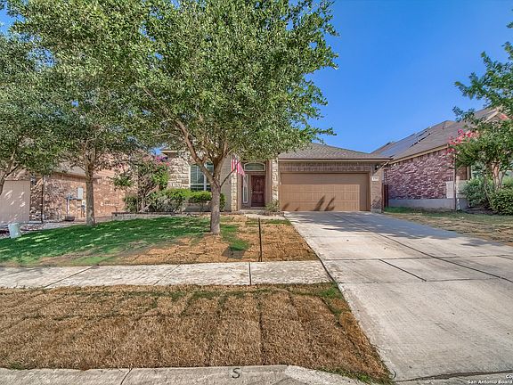 Nestled among mature trees on a greenbelt is a gorgeous single level 4 bedrooms/2 full baths home. The grand arch entry introduces you to a tray ceiling in the dining room and laminate wood floors. A conservative island in the kitchen serves as a gathering spot and offers a great vantage point to keep all entertained. The kitchen demands your attention with it display of chocolate crowned cabinets, granite countertops and stainless-steel appliances. The primary suite is a heavenly retreat with a tray ceiling and laminate wood floors that leads to a magnificent bathroom with a separate garden tube and shower. And a huge walk-in closet. On the opposite side of the primary bedroom are three additional bedrooms and a full bath. The family room is spacious and leads to a covered screened in patio to enjoy quiet evenings without additional insects. The home is located less than ten minutes from major shopping and restaurants. Finally, the Amenity Center is less than 5 minutes from your home and includes but not limited to a lap pool, playground, picnic table, BBQ Grills, Walking trails and club house. Welcome to Cibolo!!!!!!