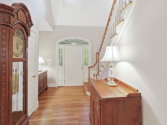 Step into your own private oasis! This stunning Cape Cod is a rare find, perfectly blending classic style with modern amenities. Relax on the oversized southern brick porch overlooking over an acre of private wooded land. This is a home built for living and entertaining. The beautiful kitchen is the heart of the home, featuring high end finishes and quartz countertops. You'll love the warmth of the beautiful hardwood floors that flow through the main and upper levels. With four bedrooms, 3.5 baths, and a massive finished basement there's a space for everyone. The basement is a versatile space with tons of windows, ideal for a game room, gym or home theatre. There is even walk in storage! Some extra bonuses in this home include built-ins around the fireplace and two bedrooms, plantation blinds, landscape lighting, irrigation system, security system, epoxy flooring in the garage, filtration system in the kitchen, gas line for grill and beautiful brick patio in the backyard. Beyond your private retreat, you'll gain access to an incredible array of neighborhood amenities. Spend your weekends at the community pool, stay active at the gym and tennis courts, or enjoy family time at the playground and clubhouse. Optional membership to the semi-private golf club is also available. Experience the best of both worlds: serene privacy and an active, social community. This home is located on a quiet cul-de-sac and is the perfect retreat. Welcome home!